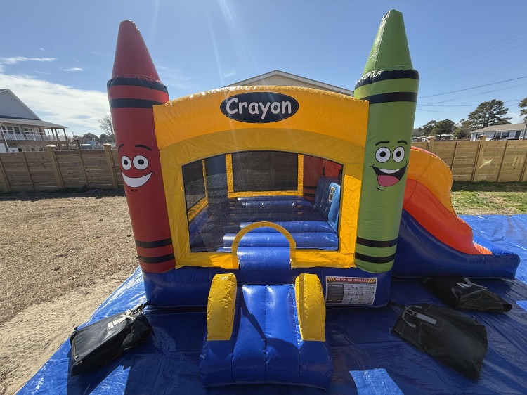 The Mini Crayon Bounce House Slide is made with commercial-grade PVC vinyl and for easy deflation, there are multiple zippers on the outside of the inflatable. The bounce house slide features a safety ramp for kids to easily climb in and out of the inflatable. The climber to go up the slide is tailored for younger kids to climb with ease and safely.