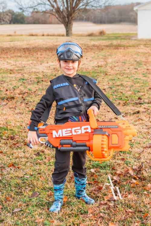 (1) Pump Blaster, Eye goggles, vest, wrist band, facemask