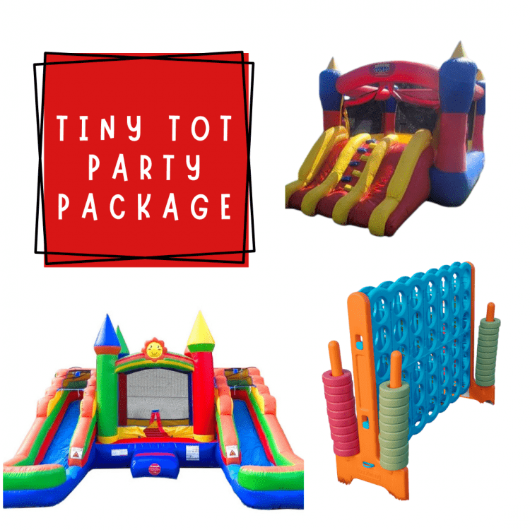 Tiny Tot Party Package — a colorful, kid-sized celebration bundle built for toddlers and preschoolers. This package centers on gentle, age-appropriate inflatables that invite safe jumping, sliding, and imaginative play: a compact bounce-and-slide combo with low ramps and soft barriers for easy entry and supervised slides, plus a small combo unit designed specifically for tiny guests.