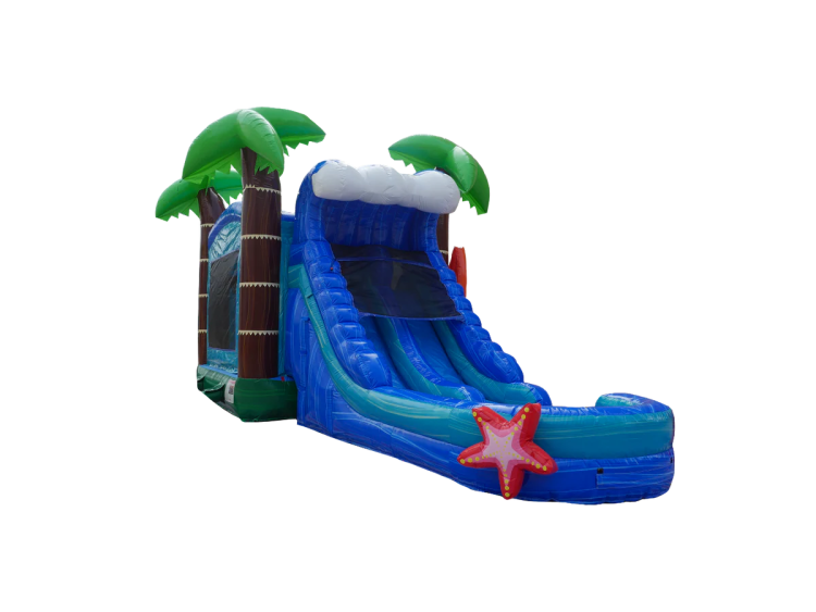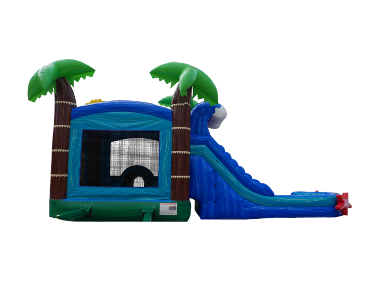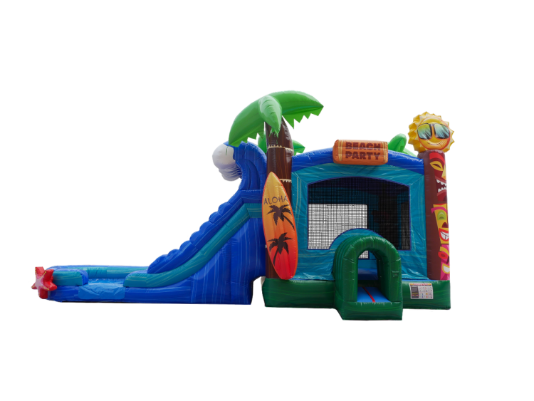 Introducing our 5 in 1 Aloha Combo Wet/Dry. With its beautiful tropical-them, 3D surfboard and cool sun, and beautifully printed Tiki graphics, this combo is the perfect addition to your inventory. Great for any event or party, this combo jumper comes with a dual water slide making it fun for anyone. The 5 in