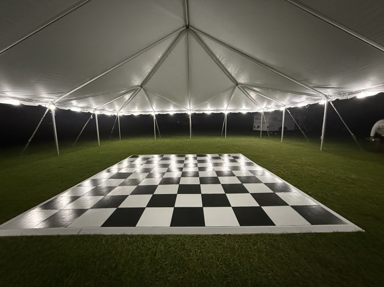 Dance the night away on this classic 15 x 15' Commercial Portable Black and White Finish Dance Floor. This heavy duty portable dance floor is installed utilizing tiles, beveled corners, and edges that lock together with plastic clips. This means that both assembly and tear down are a snap, with no glue or adhesives required. Please Note: This dance floor requires the use of a hard, flat surface for installation. Soft, uneven surfaces such as grass, sand, gravel or other uneven terrain require plywood or subflooring to be laid down first before installation.