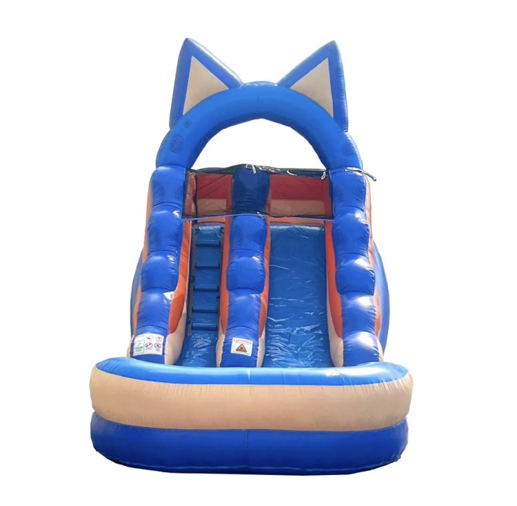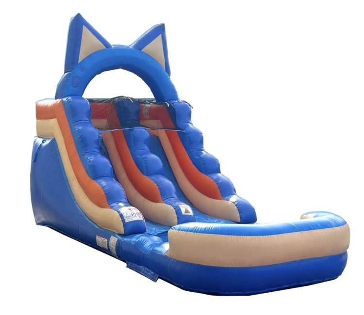 If you're looking for a high quality slide without that commercial grade price tag, then the Super. Sonic Water Slide delivers. Whether it's being used with or without water, this 12 foot tall slide is just a flat out ultra-fun time in your backyard! So simple and easy to use, simply connect the bladder misting system to a standard garden hose and you're ready to go! EVERYONE loves a water slide on a hot summer day and with this unit, your kids can enjoy that cool, refreshing bliss any time of the year! This unit pairs as well with our Blue Puppy, Dog Paw Bounce House. Perfect for a Paw Patrol , Bluey , or Sonic themed party.